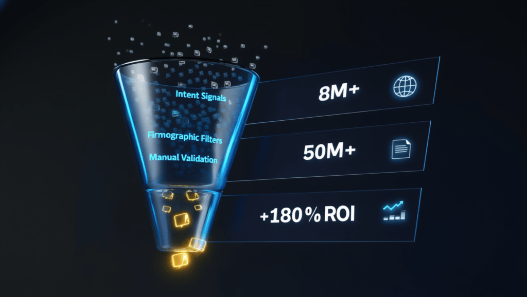 They combine intent signals, firmographic filters, and content engagement data to target decision-makers who are actively researching in your category. Leads are validated manually across their UK strategy team and India operations centre-not just passed through an algorithm and handed over.